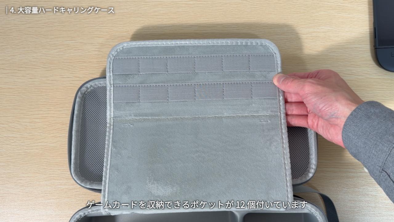 仕切りの裏側には、ゲームカードを収納できるポケットが12個付いています。