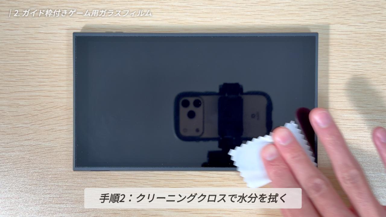 画面がキレイになったら、今度はクリーニングクロスを使って、残った水分をしっかりと拭き上げていきましょう。