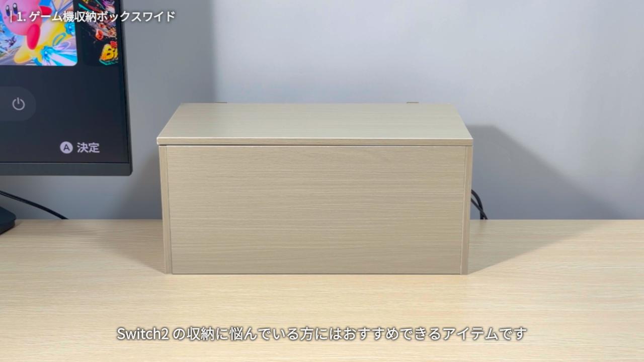 インテリアに馴染むデザインなので、このボックスに収納しておけば、ごちゃつきがちな生活感をすっきりと隠せます。ホコリ除けにもなりますし、Switch2 の収納に悩んでいる方にはおすすめできるアイテムです。