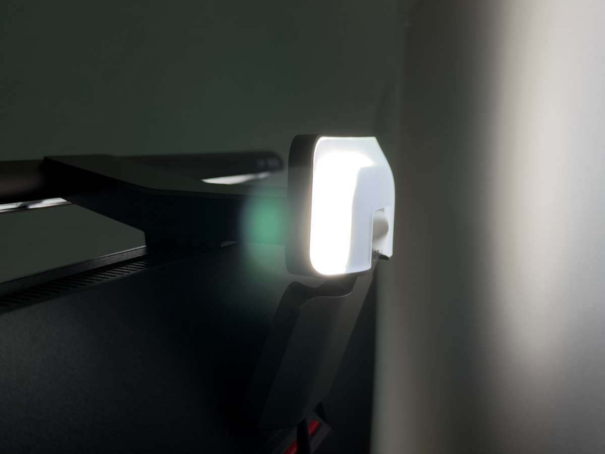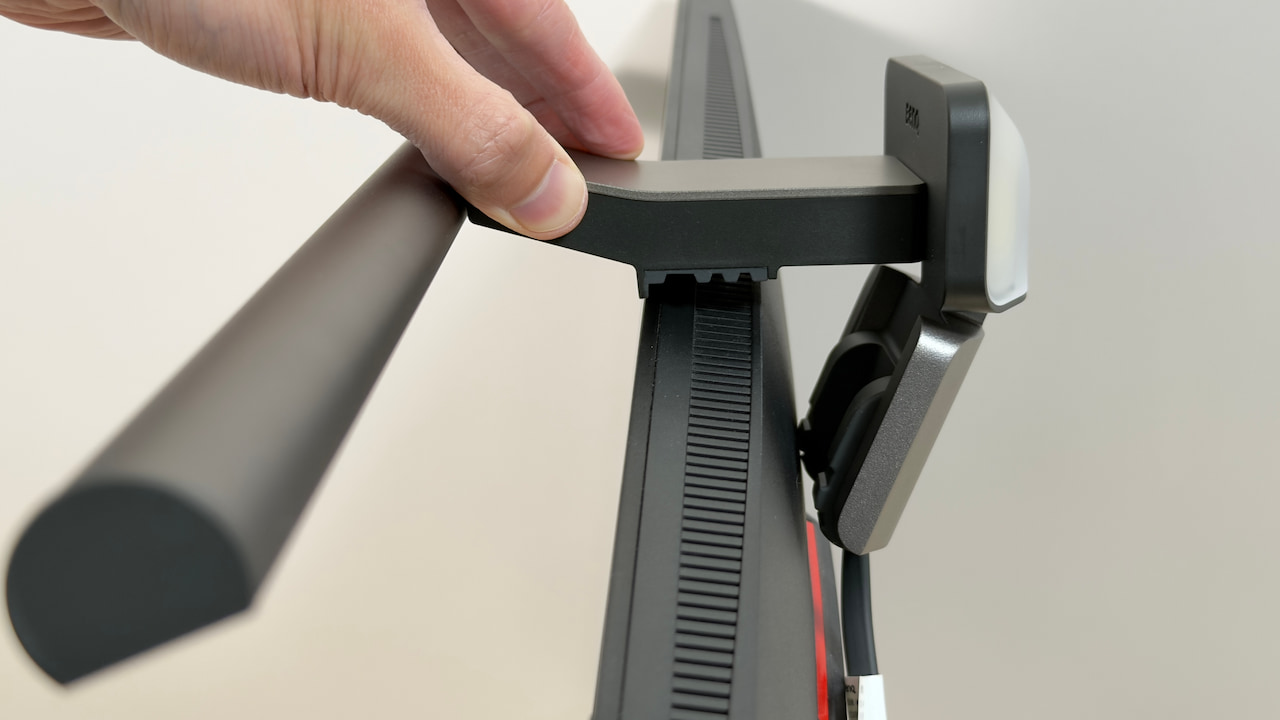 モニター上部にライトを設置したら、本体がディスプレイの中央に位置するように微調整します。