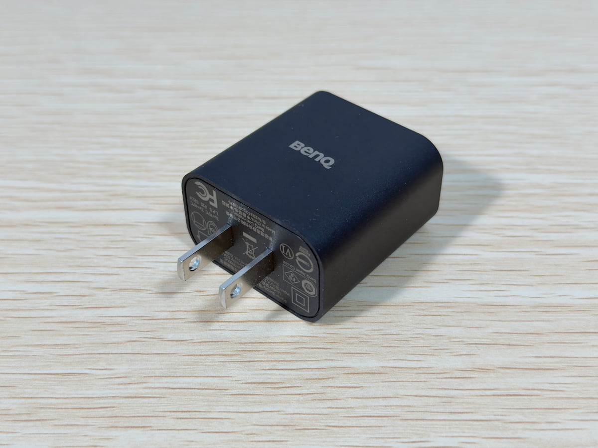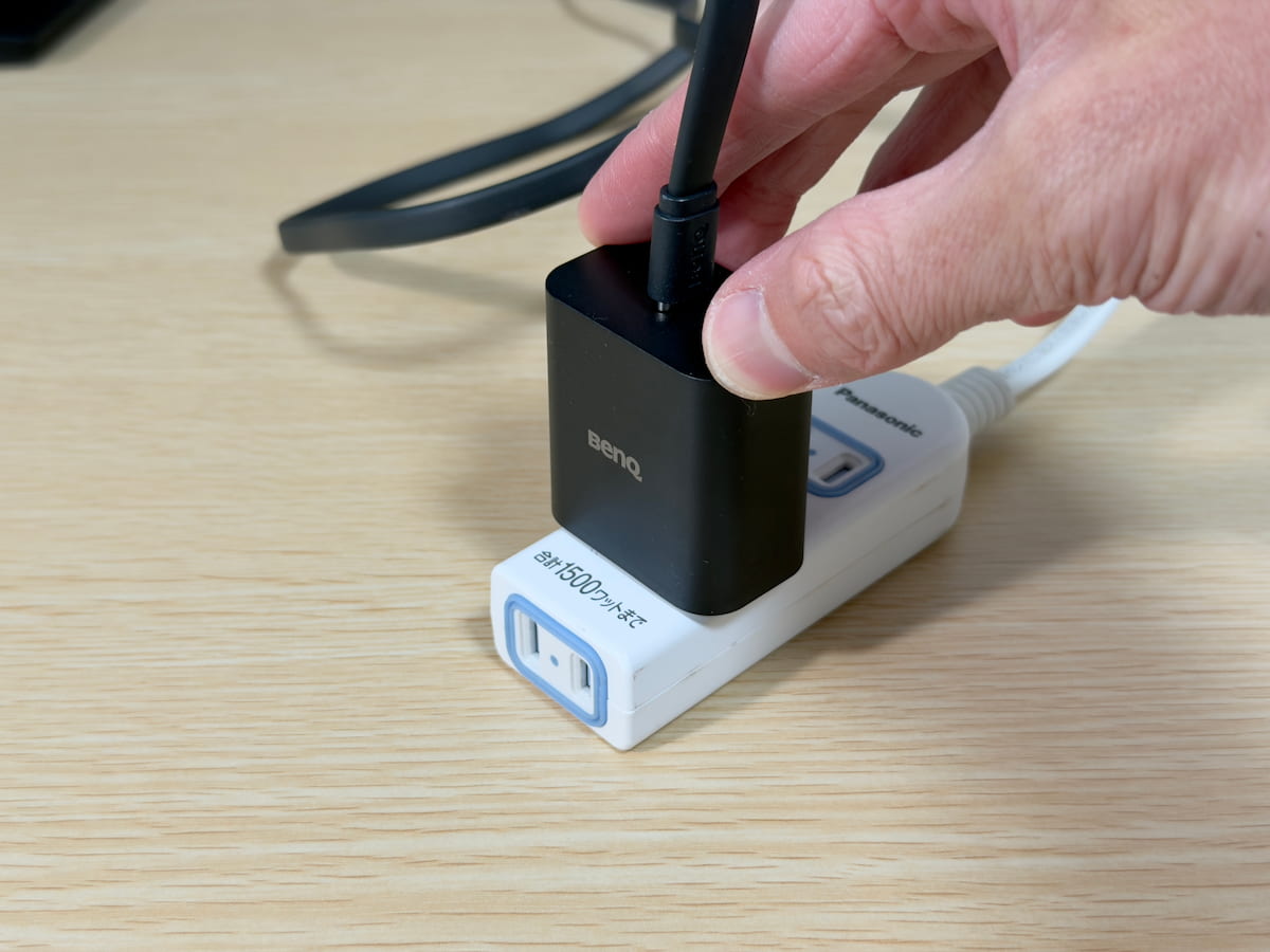 本体から伸びる USB Type-C コードを、付属の USB Type-C アダプターに接続し、コンセントに挿し込めば給電が開始されます。