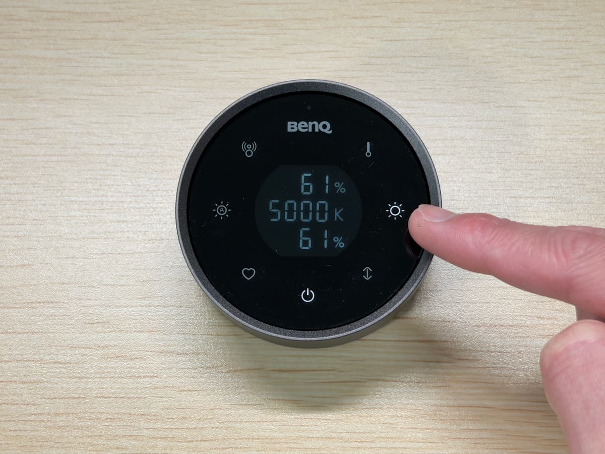 ボタンをタッチした後、ダイヤルを回すことで、2700~6500K(ケルビン)の間を 25K 刻みで細かく調整できます。