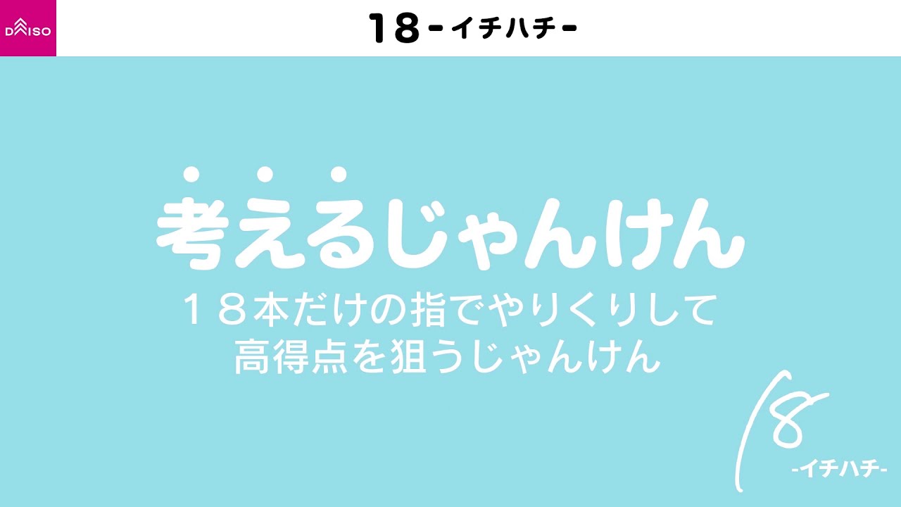18(イチハチ)は、18本の指だけでやりくりして高得点を狙うじゃんけんです。ルールが簡単でとっつきやすく、老若男女たのしめるボドゲです。