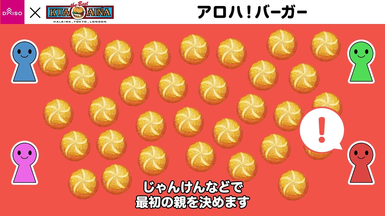 ルールはちょっと分かりにくいので、先にダイソーの公式動画(上)を見ておおまかな流れを把握すると良いでしょう。