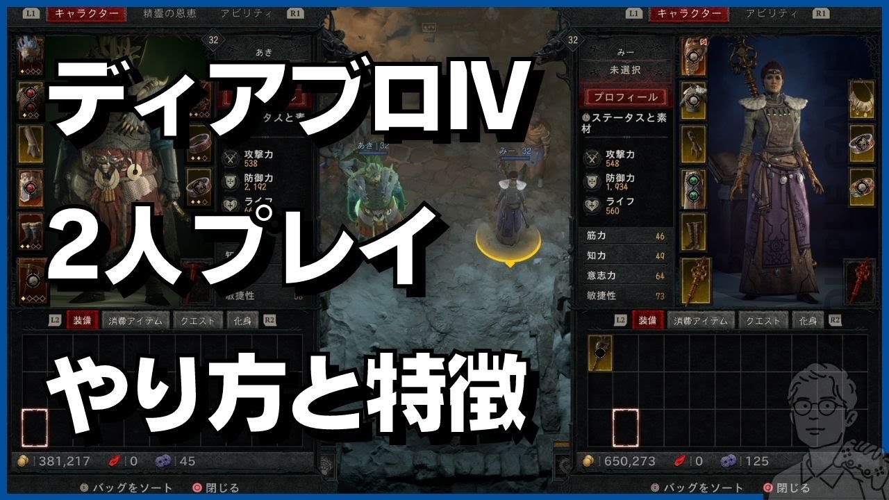 ディアブロ4を画面分割2人プレイであそぶときの特徴を簡単にご紹介。