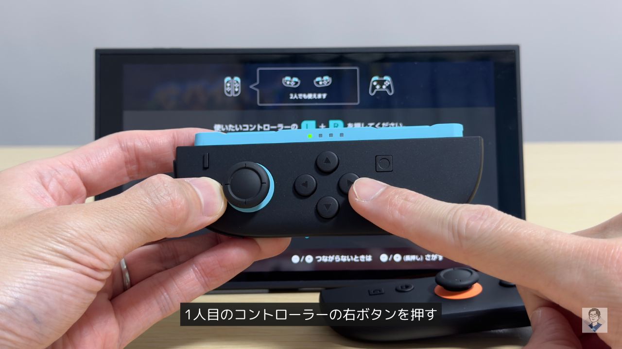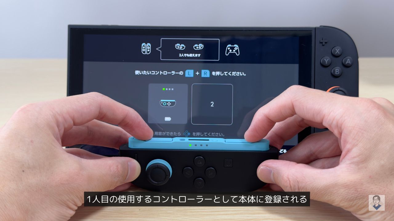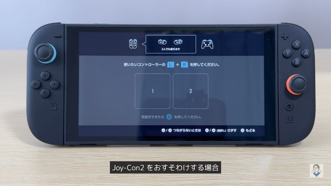 まず、本体から片方の Joy-Con2 を外し、1人目の使用するコントローラーとして登録します。