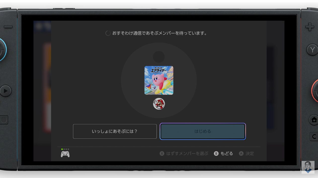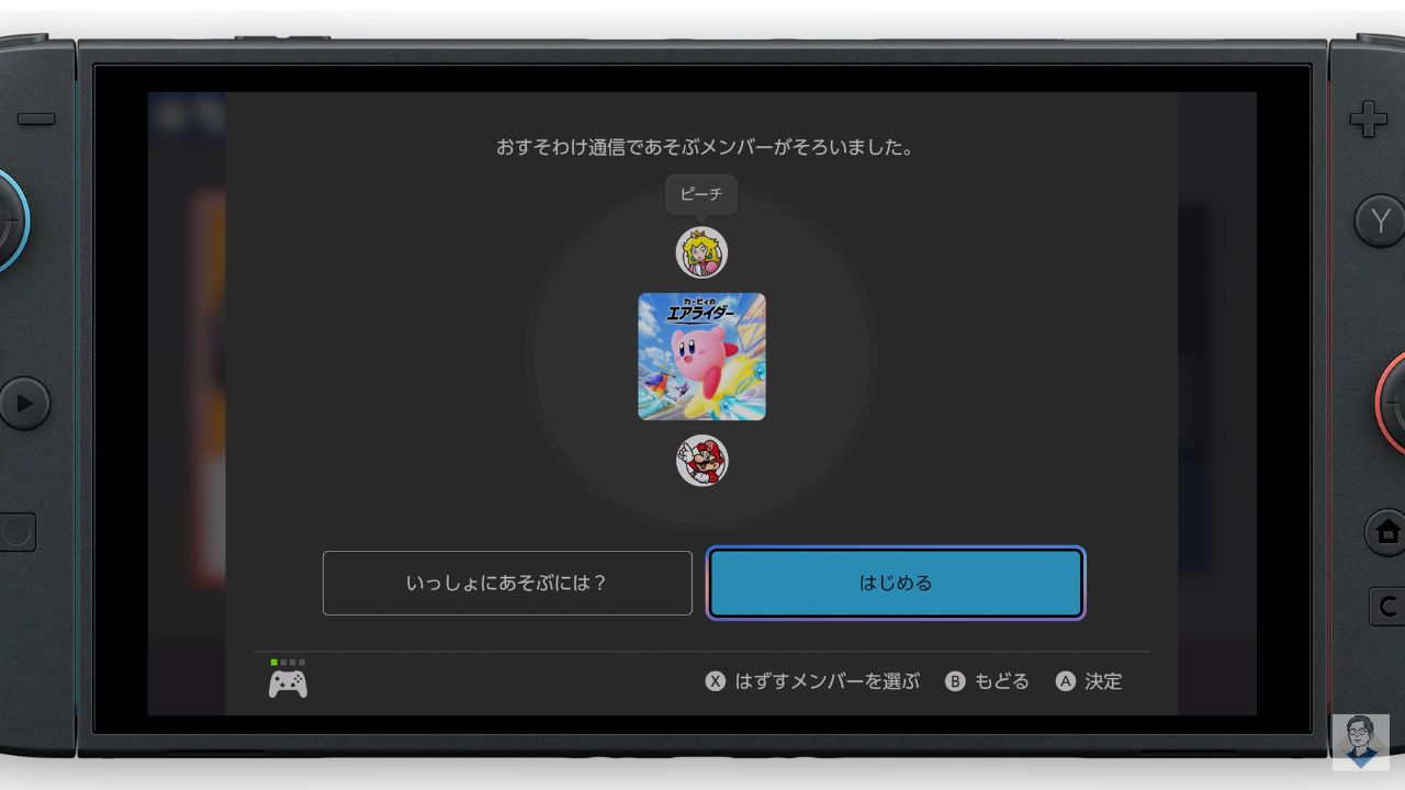 最後に、ソフトを持っている本体で、メンバー全員がそろったことを確認し、「はじめる」を選択すれば準備完了です。