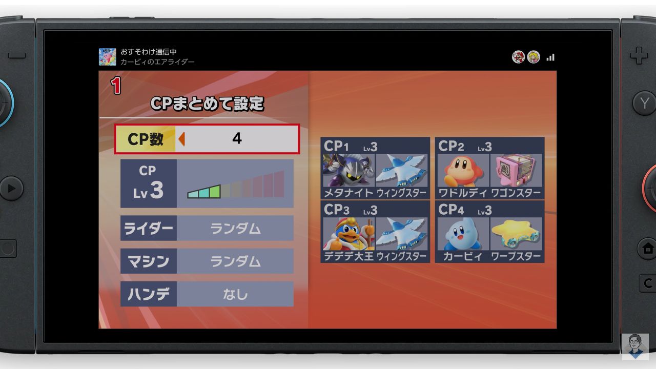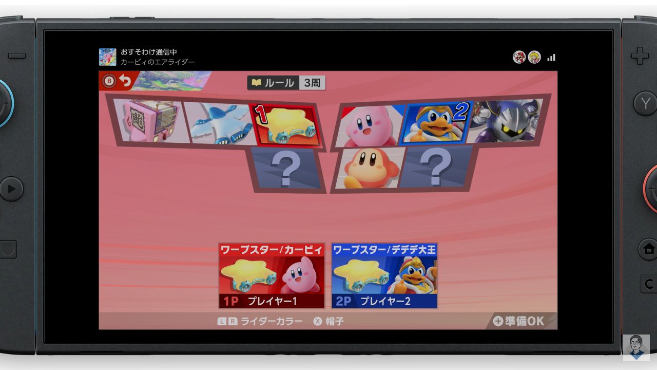 「カービィのエアライダー」画面分割プレイ(オフライン対戦)のやり方