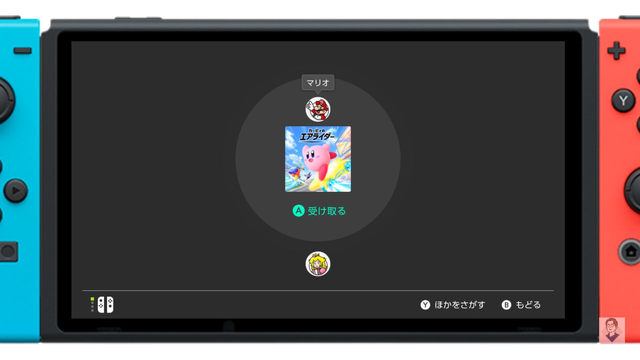 Switch2 の場合は、「受け取る」を選んだ後、さらに「近くの人から」を選択してください。