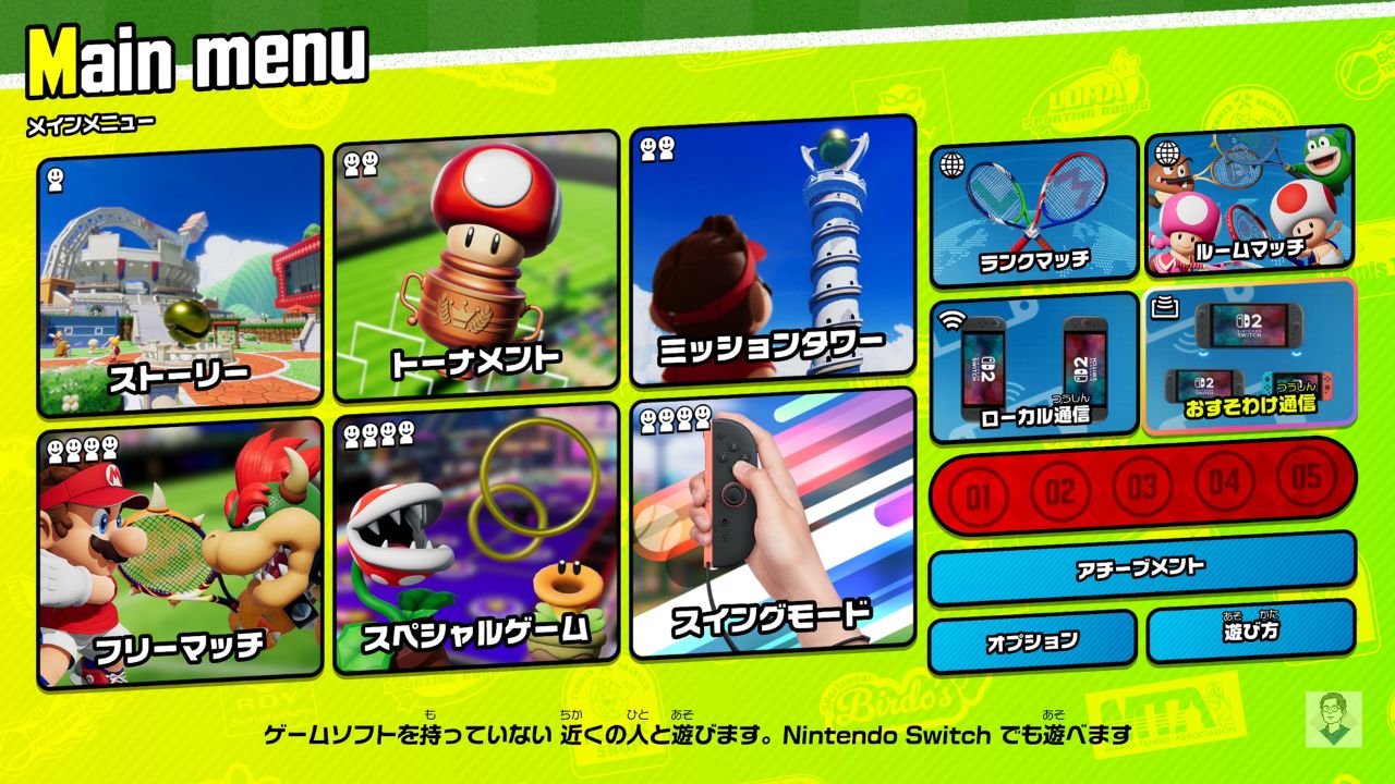 「マリオテニス フィーバー」おすそわけプレイのやり方!全5モードの人数・協力要素を徹底解説