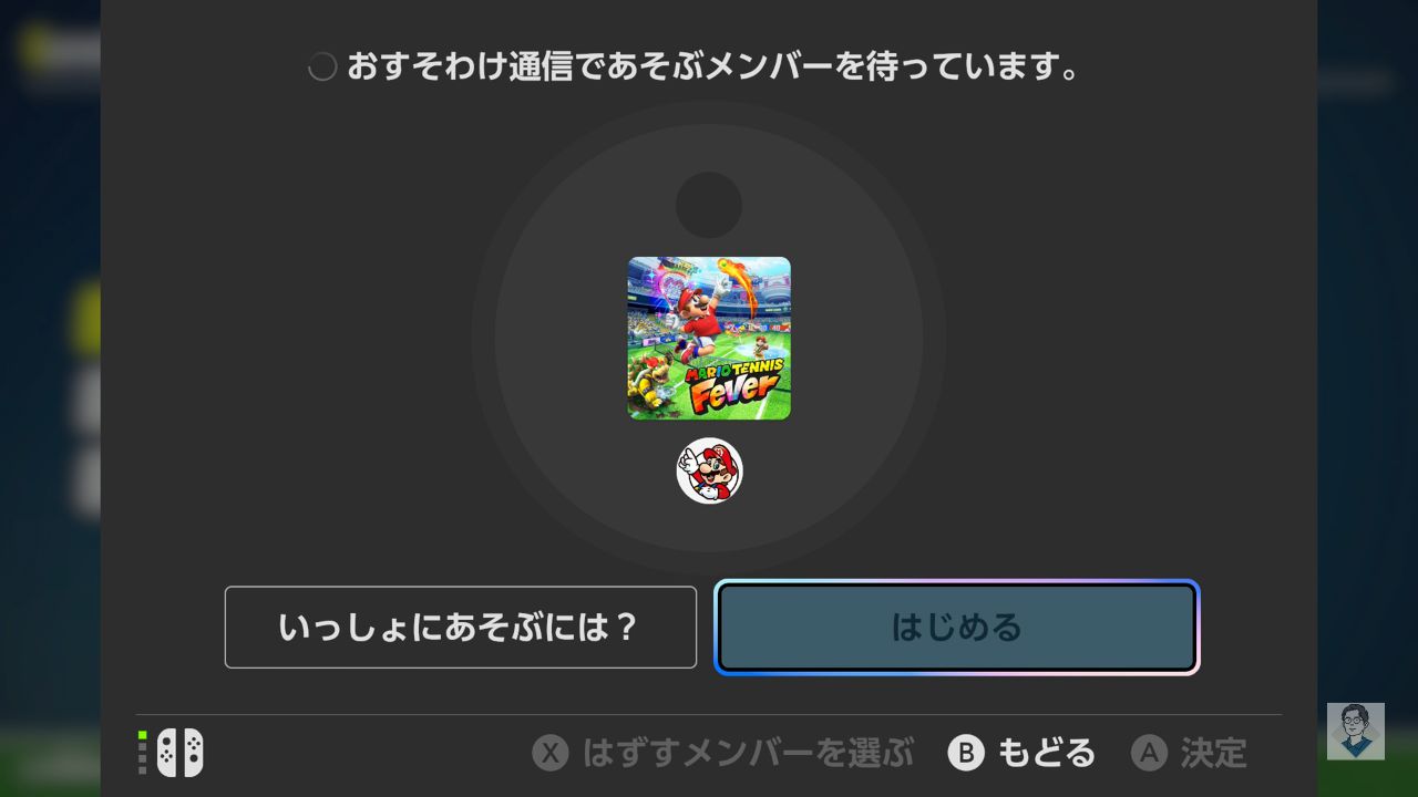 最後に、ソフトを持っている本体でメンバー全員がそろったことを確認し、「はじめる」を選択すれば準備完了です。