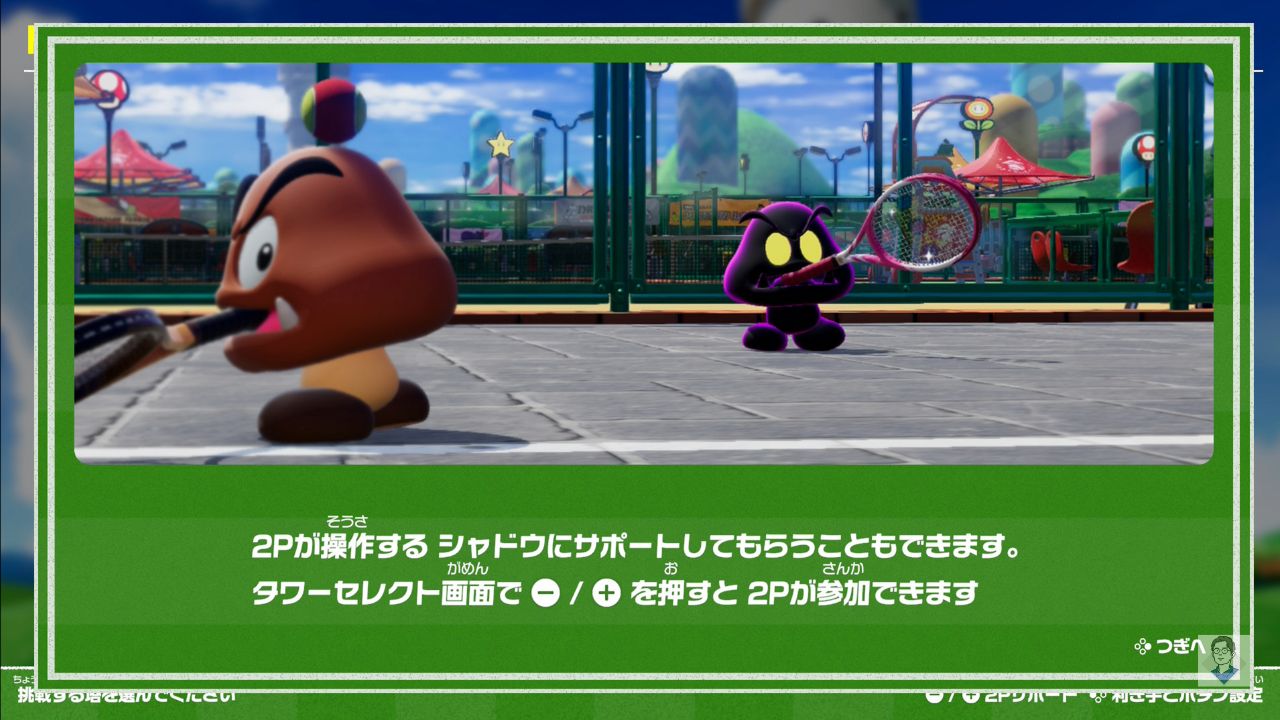 スタイル: ダブルスを選べば、2人で協力してCPUチームと戦い、優勝を目指せます。 どちらが前衛・後衛をやるかなど、2人で戦略を立てて勝ち進む達成感が味わえます。