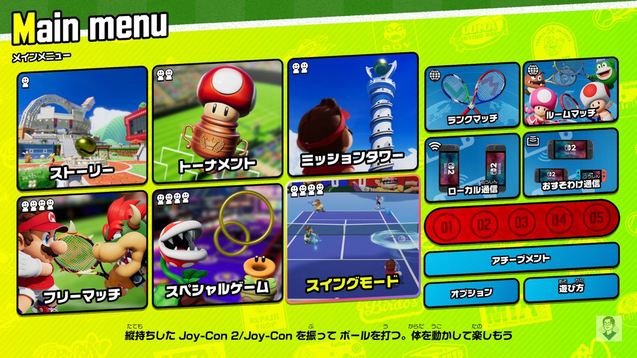 集まった人数や好みにぴったりのモードを見つけて、最新のマリオテニスをさっそく楽しみましょう!
