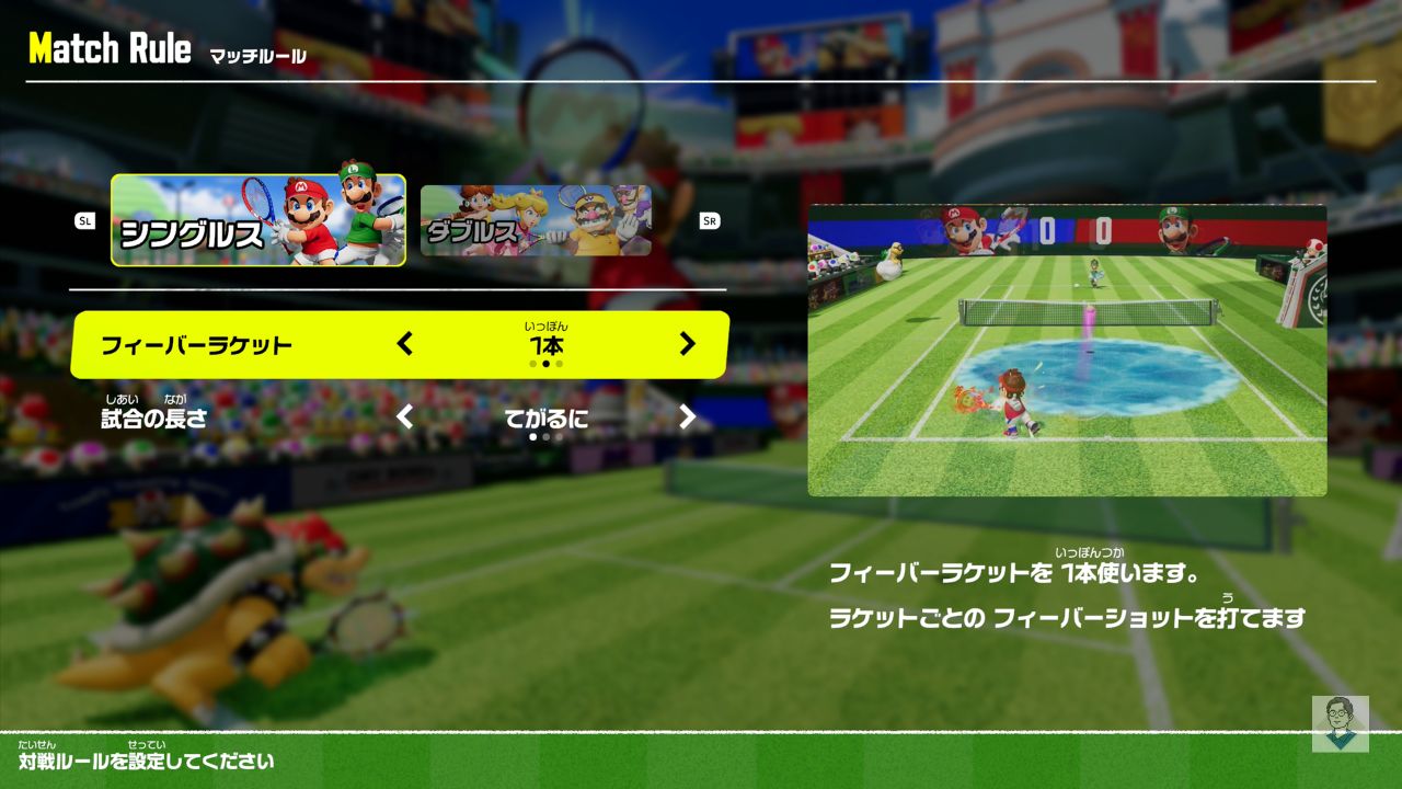 続いて、今作の目玉であるフィーバーラケットの有無や、試合の長さを設定しましょう。