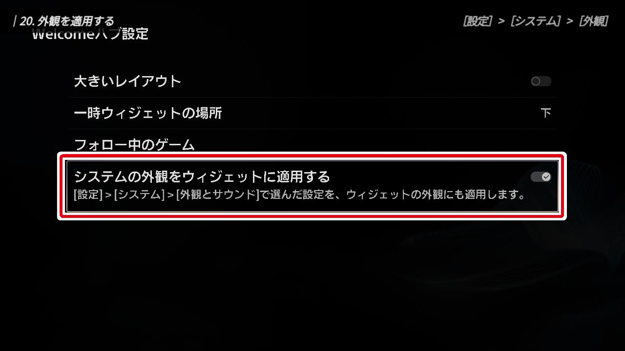 ただし、一点注意が必要です。ハイコントラストをオンにすると、Welcomeハブの背景も連動して暗くなってしまいます。お気に入りの背景画像を綺麗に見せたい場合は、この設定はオフのままにしておくのがおすすめですよ。