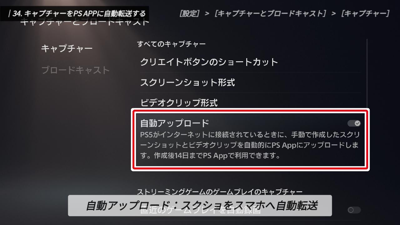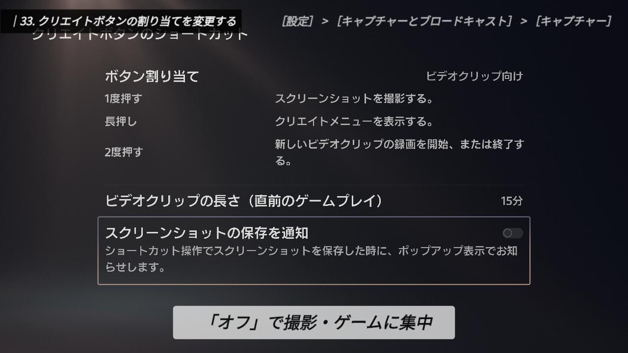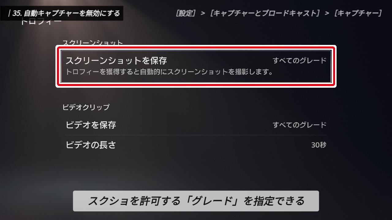 トロフィー収集が趣味の方や、SNSに動画をアップする方には嬉しい機能ですが、そうでない方にとっては、貴重なストレージをじわじわと圧迫してしまう原因にもなります。不要なものは今のうちにオフにしておきましょう。