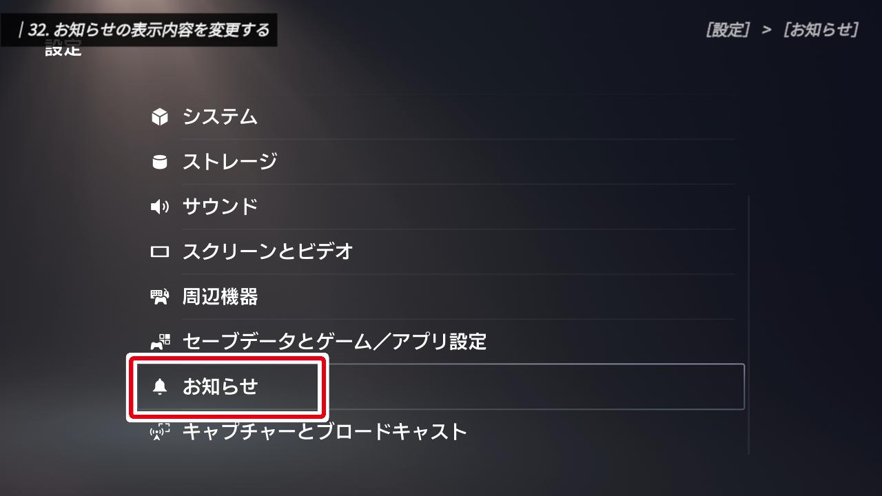 設定一覧に戻り、「お知らせ」を選択してください。