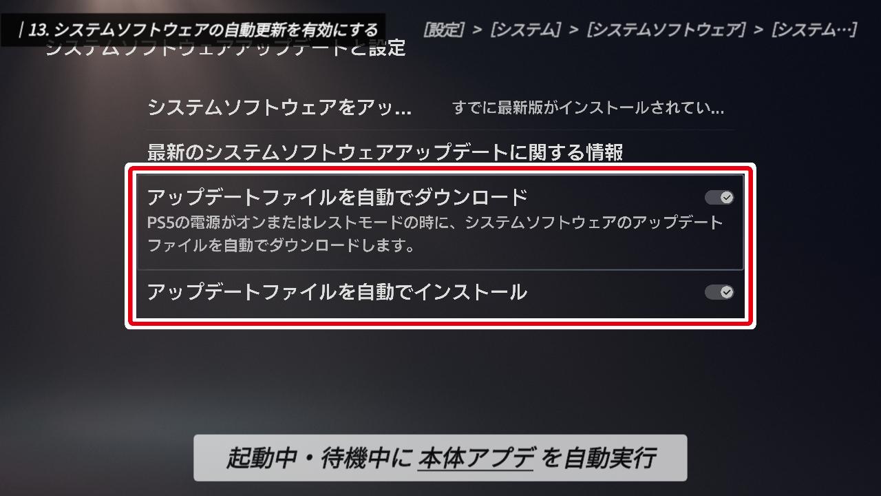 特にオンラインで対戦や協力を楽しむゲームでは、最新版にアップデートしておかないと、そもそも起動できないことがほとんどです。「いざ遊ぼうとしたら長いダウンロードが始まって、フレンドを待たせてしまった……」なんて事態を防ぐためにも、オンラインプレイが中心の方は、ぜひ有効にしておきましょう。