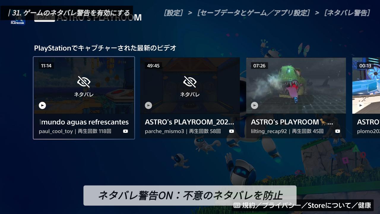ここにある「ゲームのネタバレを警告」は、PS5上で目にする情報の中にネタバレが含まれていた場合、それを自動で隠してくれる非常にありがたい機能です。