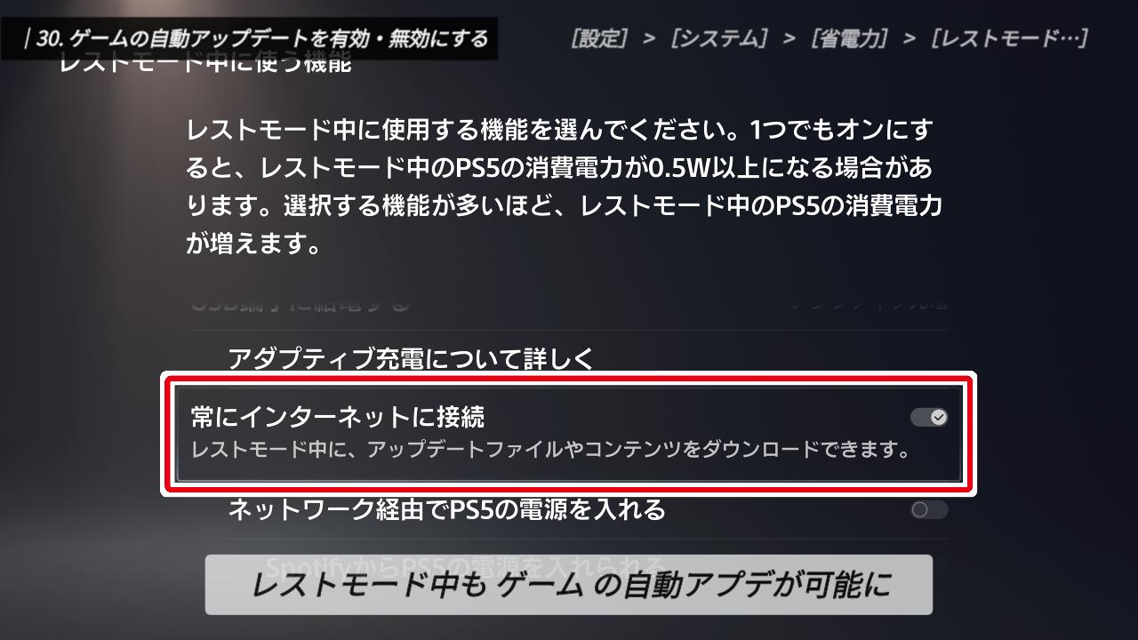 こうすることで、レストモードの間も、ゲームのアップデートを自動で完了させてくれますよ。