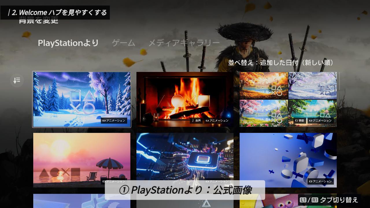 1つ目は「PlayStationより」。ロゴなどをモチーフにした公式画像が選べます。