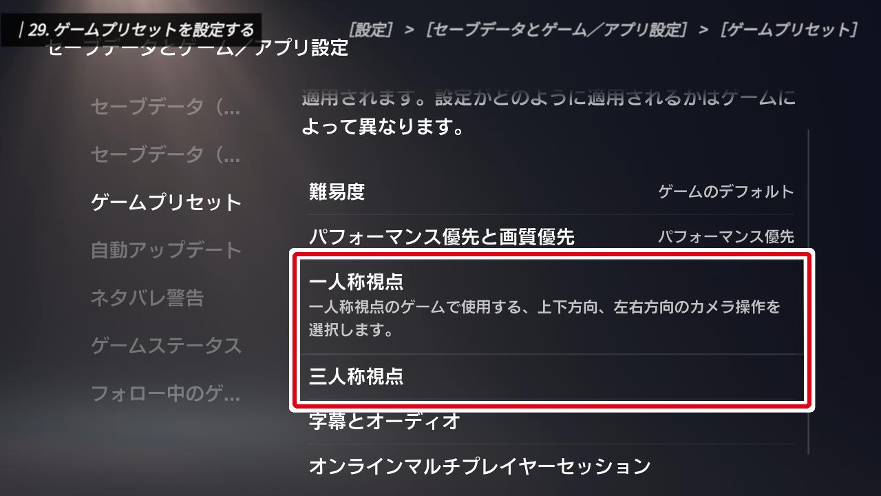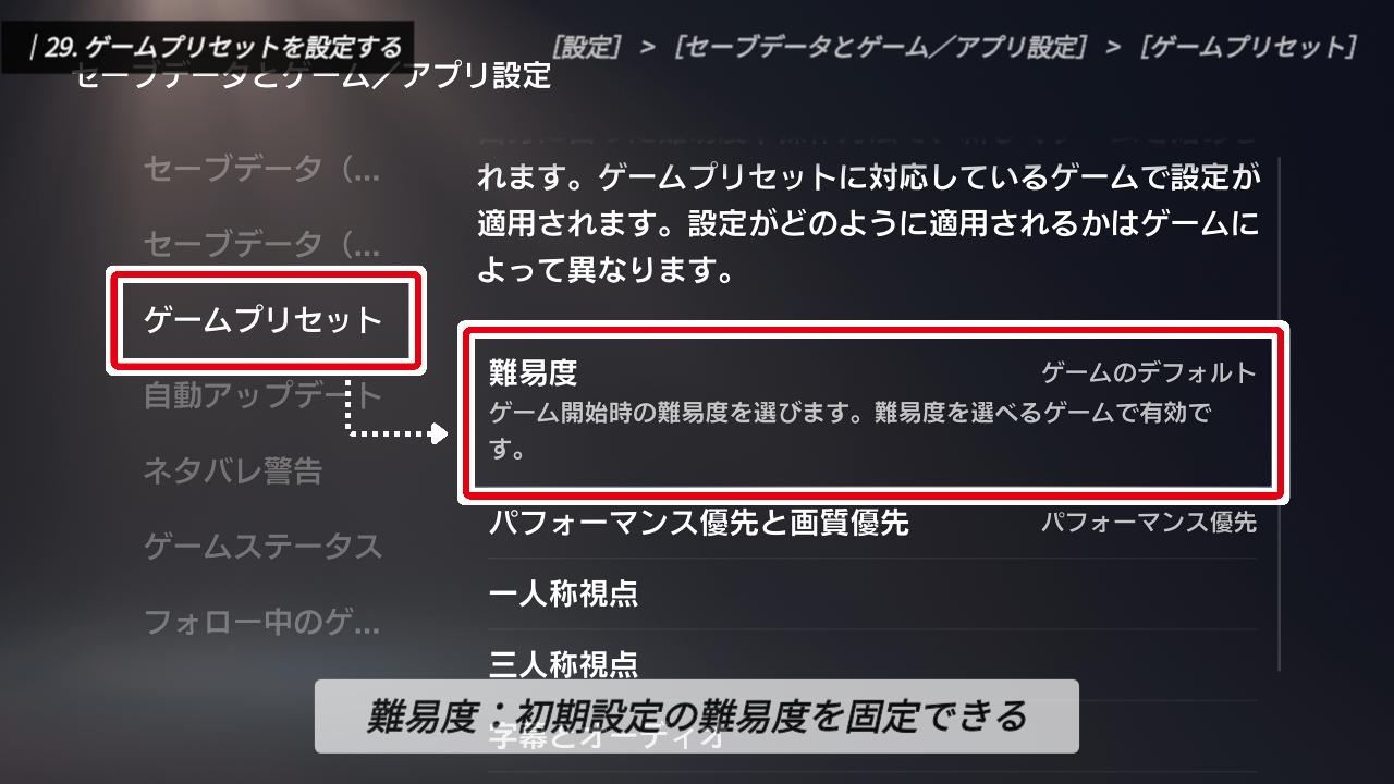 ゲームプリセットを設定する