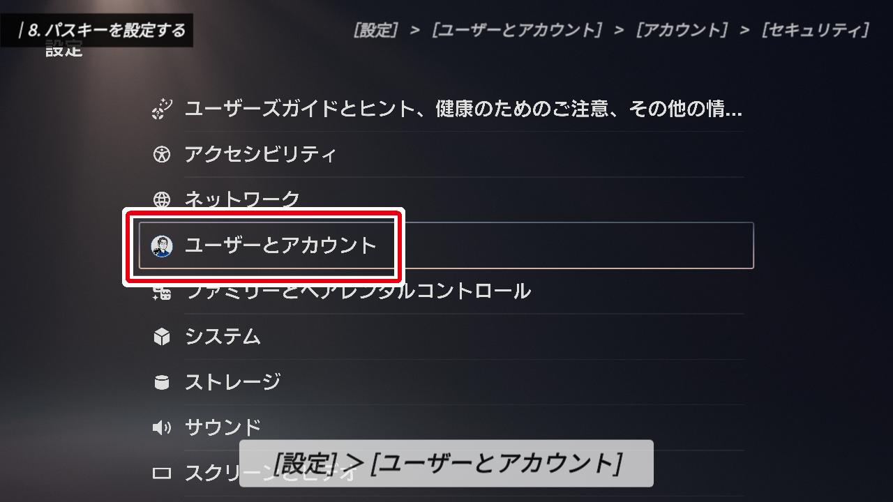 設定一覧に戻り、次は「ユーザーとアカウント」を選択してください。