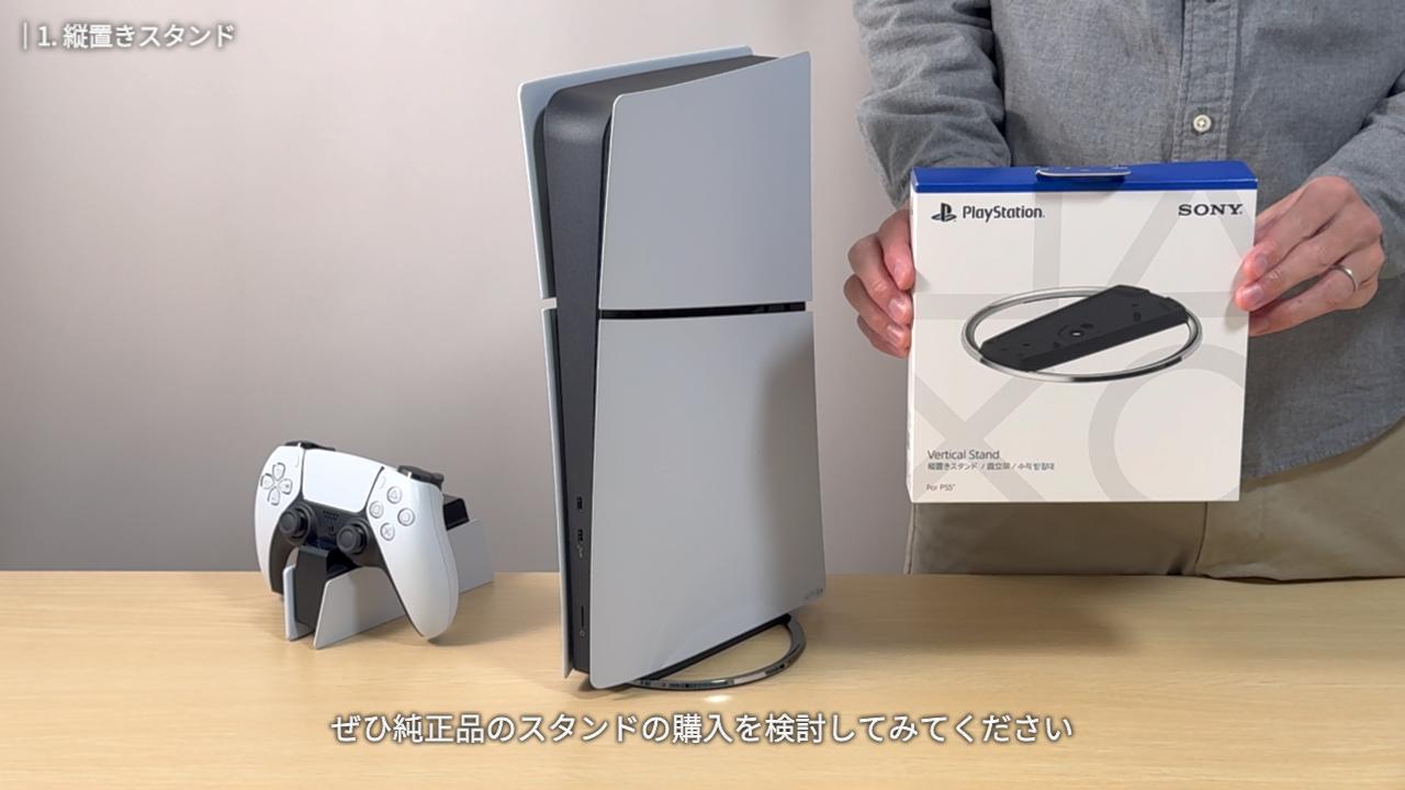 縦置きスタンドはサードパーティからも出ていて、価格は手頃なものが多いです。ただし、見栄えがあまり良くない場合もあります。