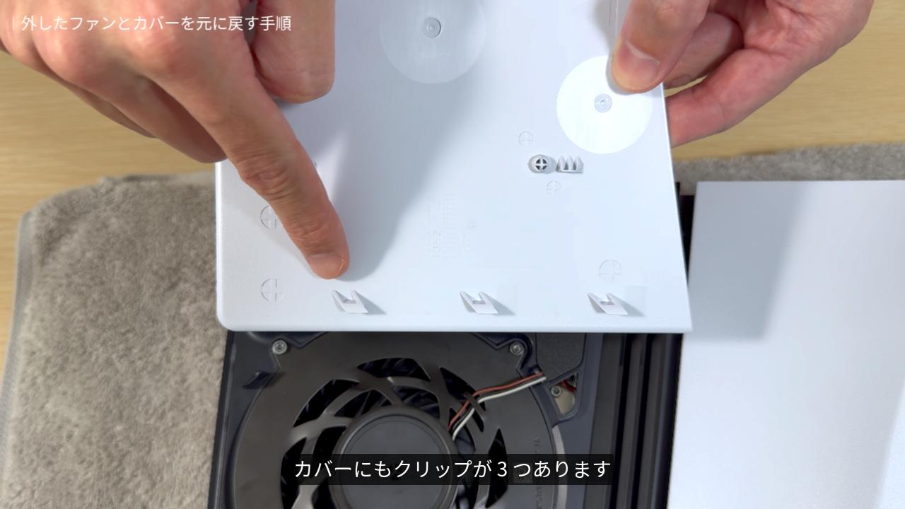 ファンとカバーを取り付け、PS5 を元の状態に戻していきます。
