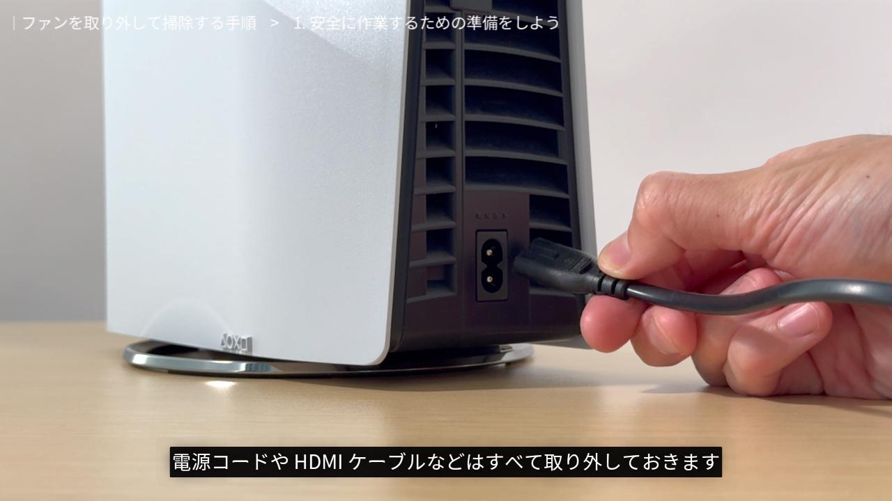 電源コードやHDMIケーブルなどはすべて取り外しておきます。
