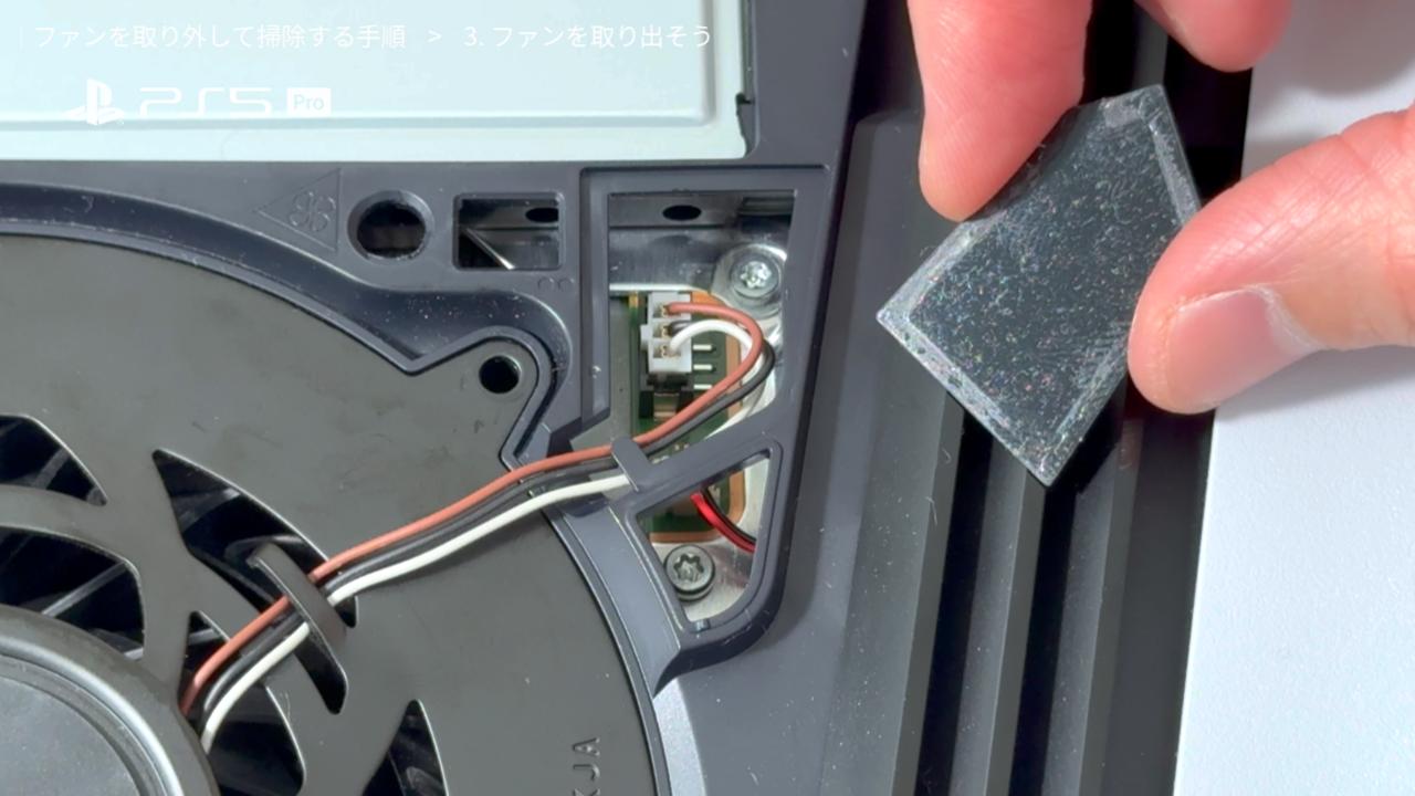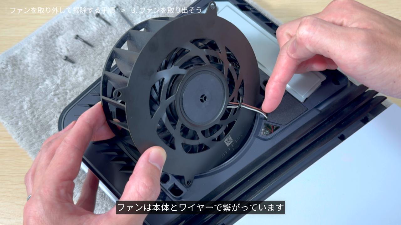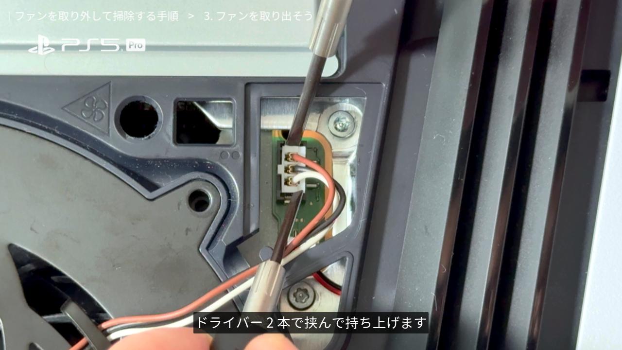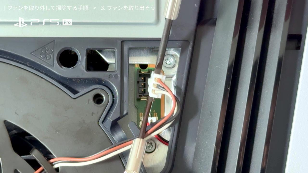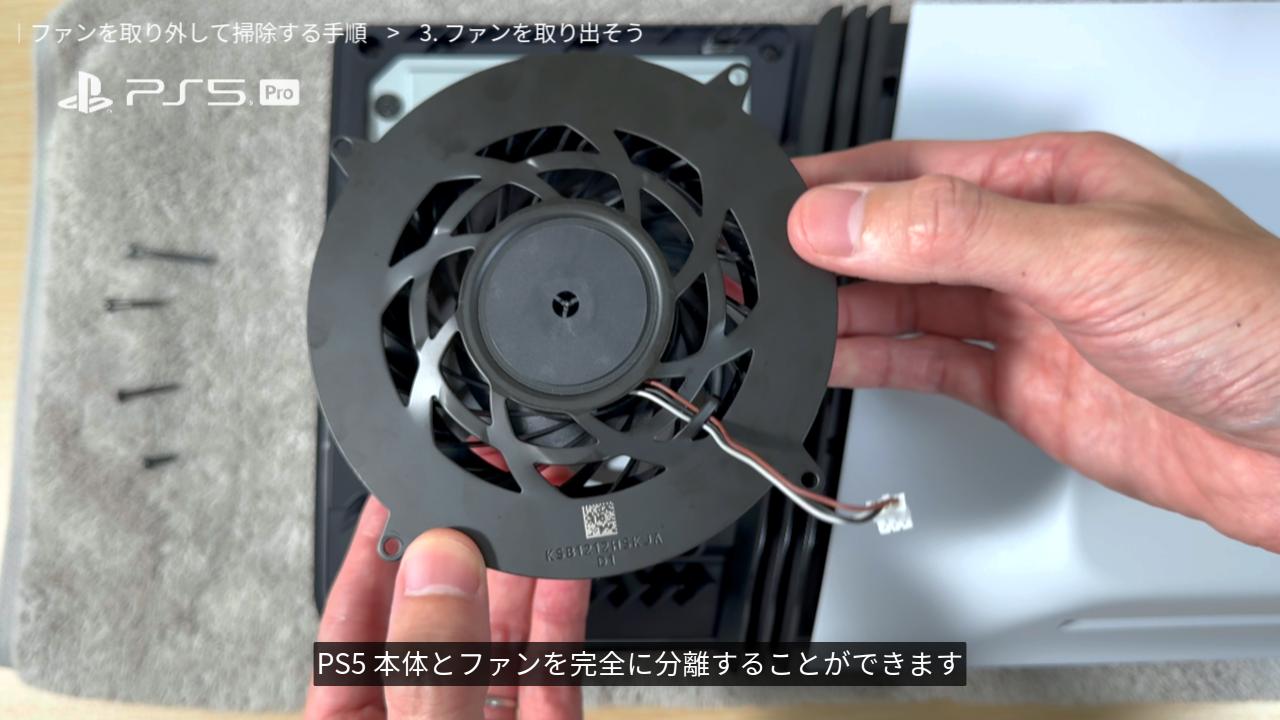 ワイヤーのコネクターを引き抜いたら、PS5 本体とファンを完全に分離することができます。