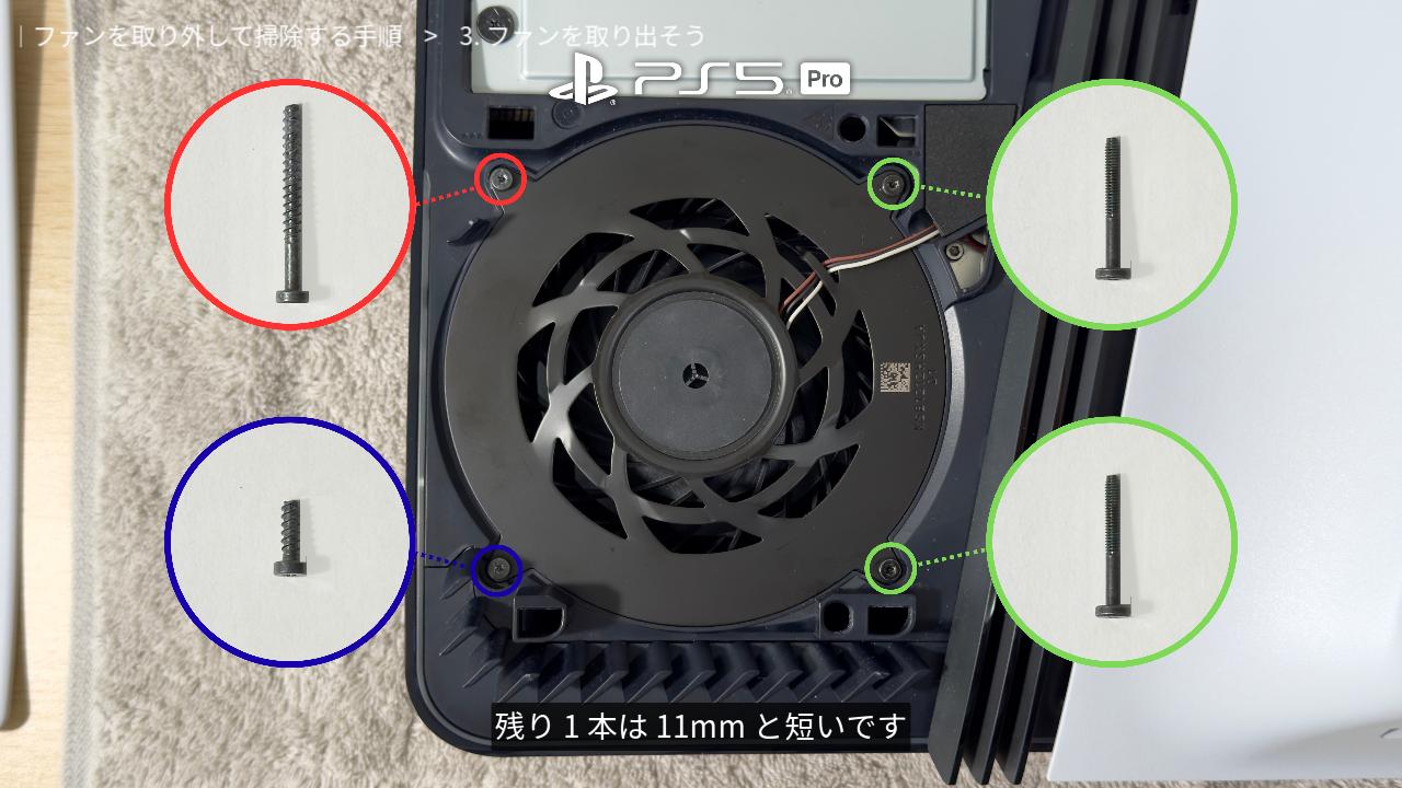 PS5 / PS5 Pro のファンはトルクスネジで 4 か所 固定されています。
