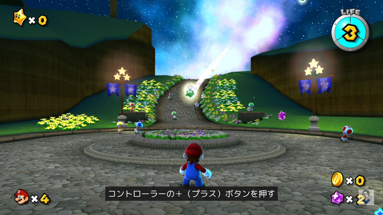マリオ(1P)が操作できるようになったら、コントローラーの+(プラス)ボタンを押します。