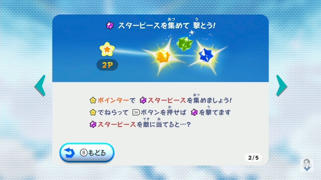 集めたスターピースを発射して、敵に当てて気絶させたりができます。