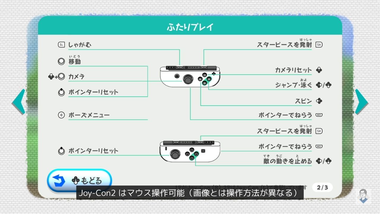 2人プレイ時は、2P はポインターを動かしながらアシストチコを操作して、1Pのサポートができます。
