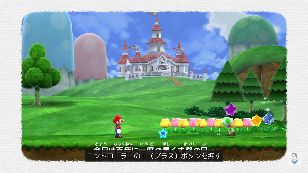マリオ(1P)が操作できるようになったら、コントローラーの+(プラス)ボタンを押します。