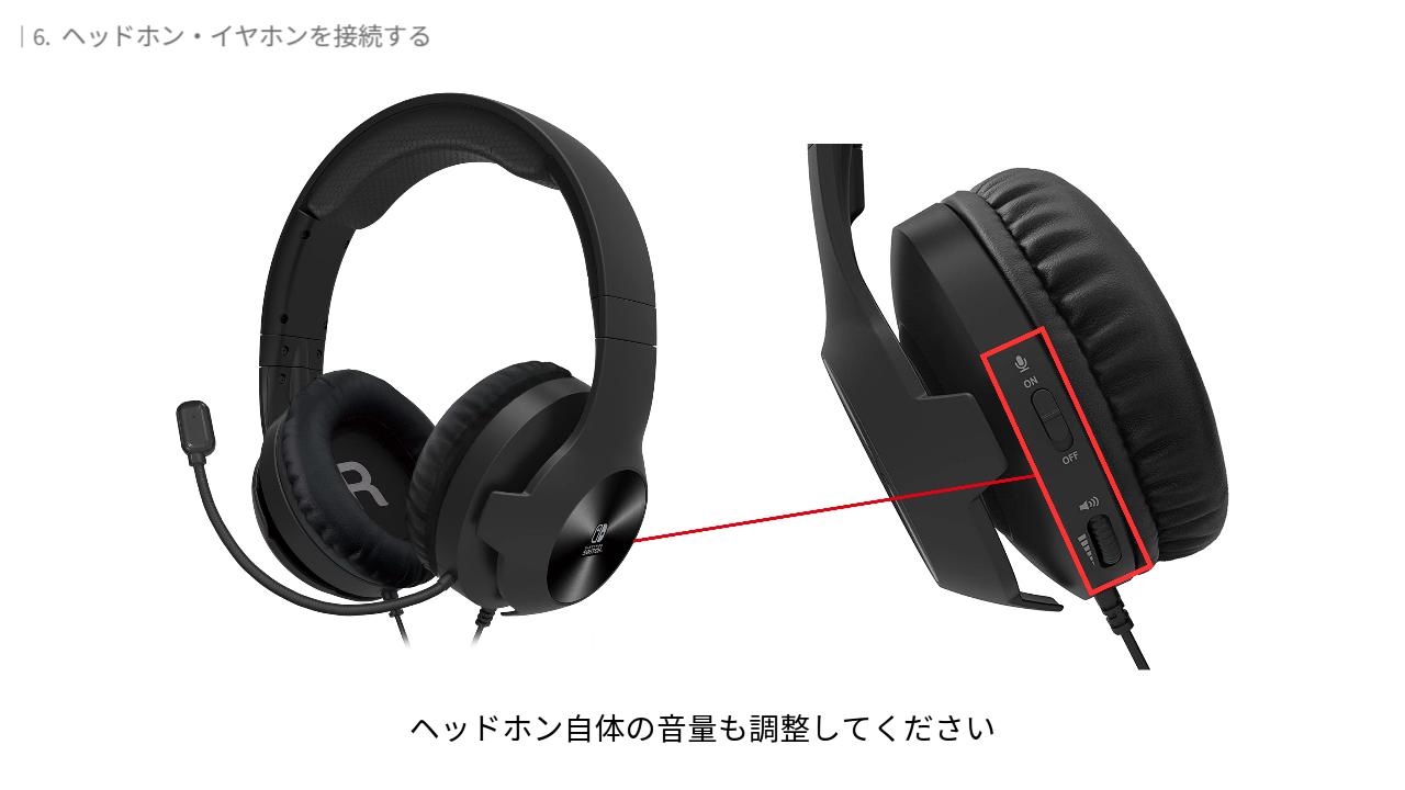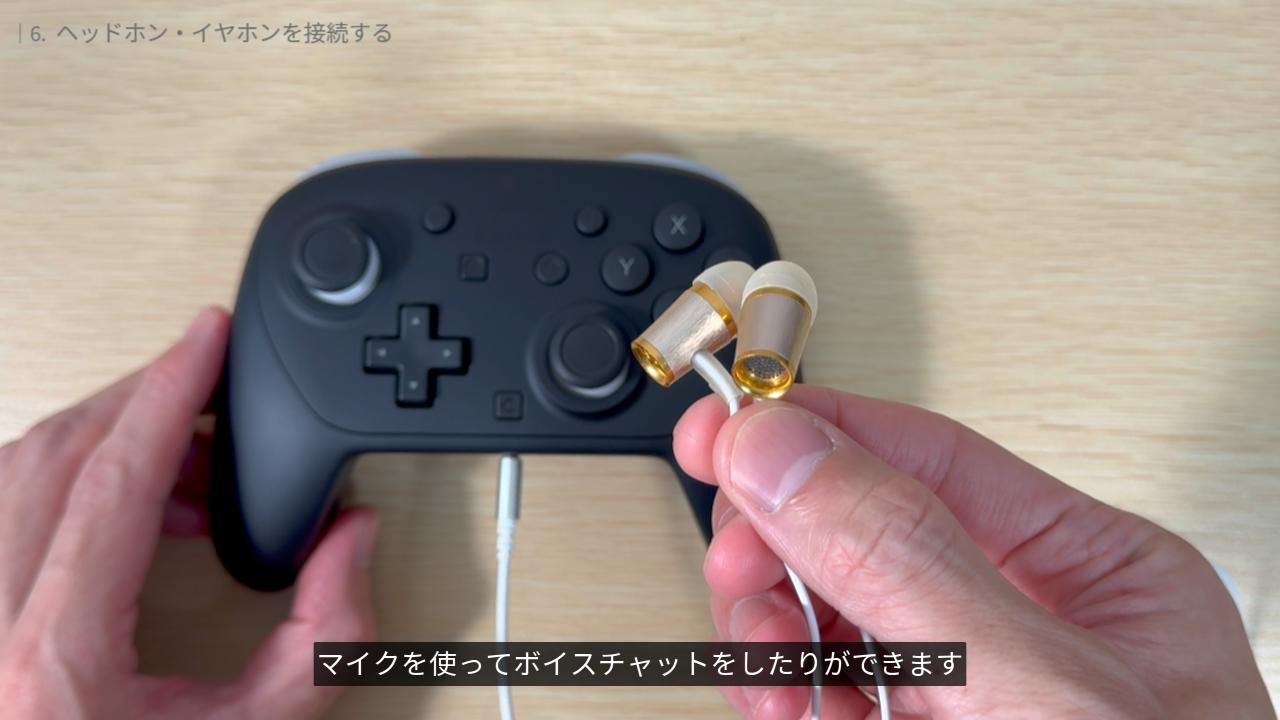 対応した有線ヘッドホンやイヤホンを接続すると、ゲームの音声を耳元で聞いたり、マイクを使ってボイスチャットをしたりができます。