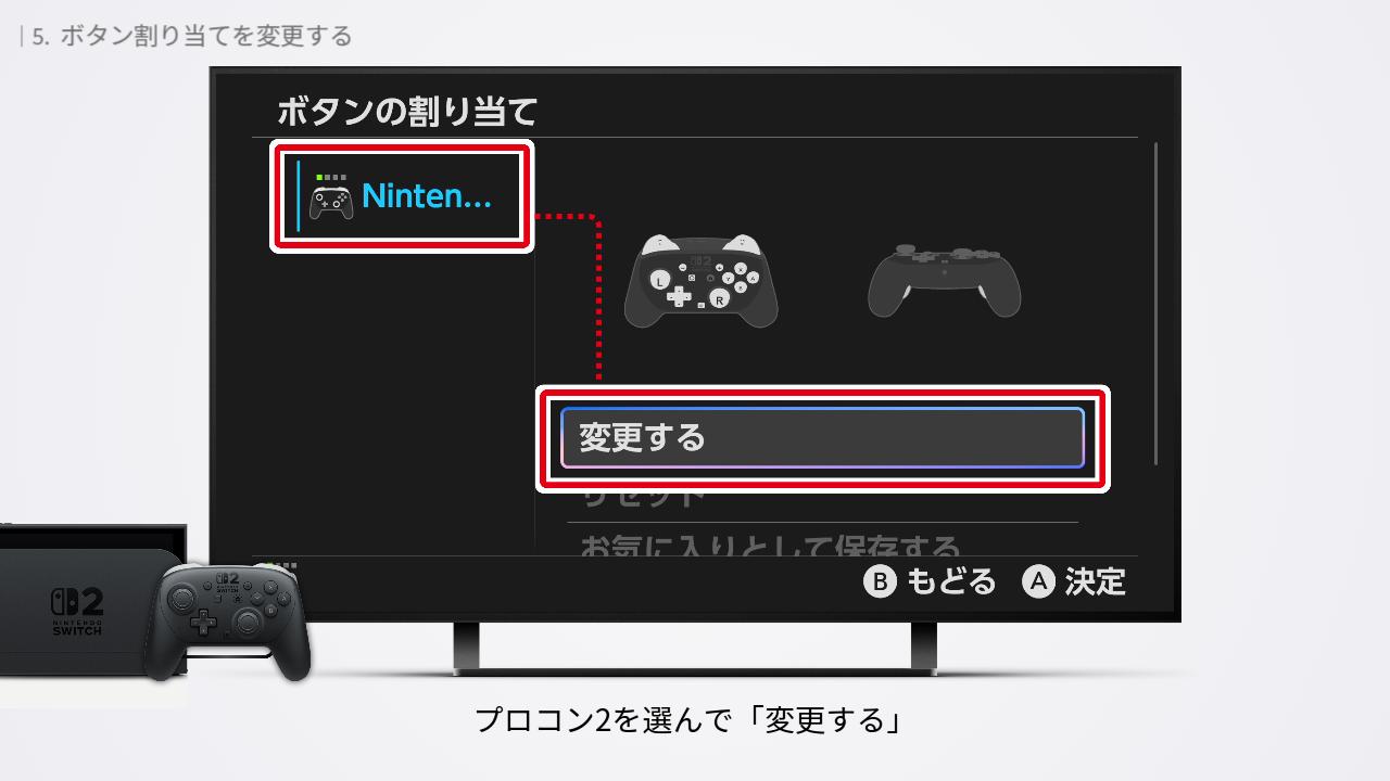ボタン割り当ての設定画面が表示されたら、プロコン2を選んで「変更する」。