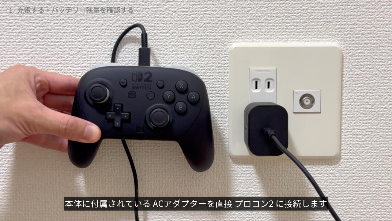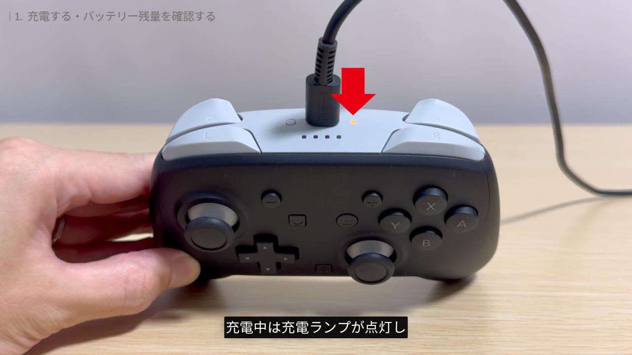 まずは、プロコン2の充電方法・バッテリー残量の確認方法をご紹介します。