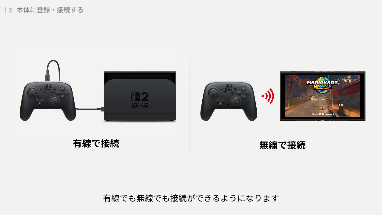 次に、プロコン2 を Switch2 に登録する方法、登録後の接続方法をご紹介します。