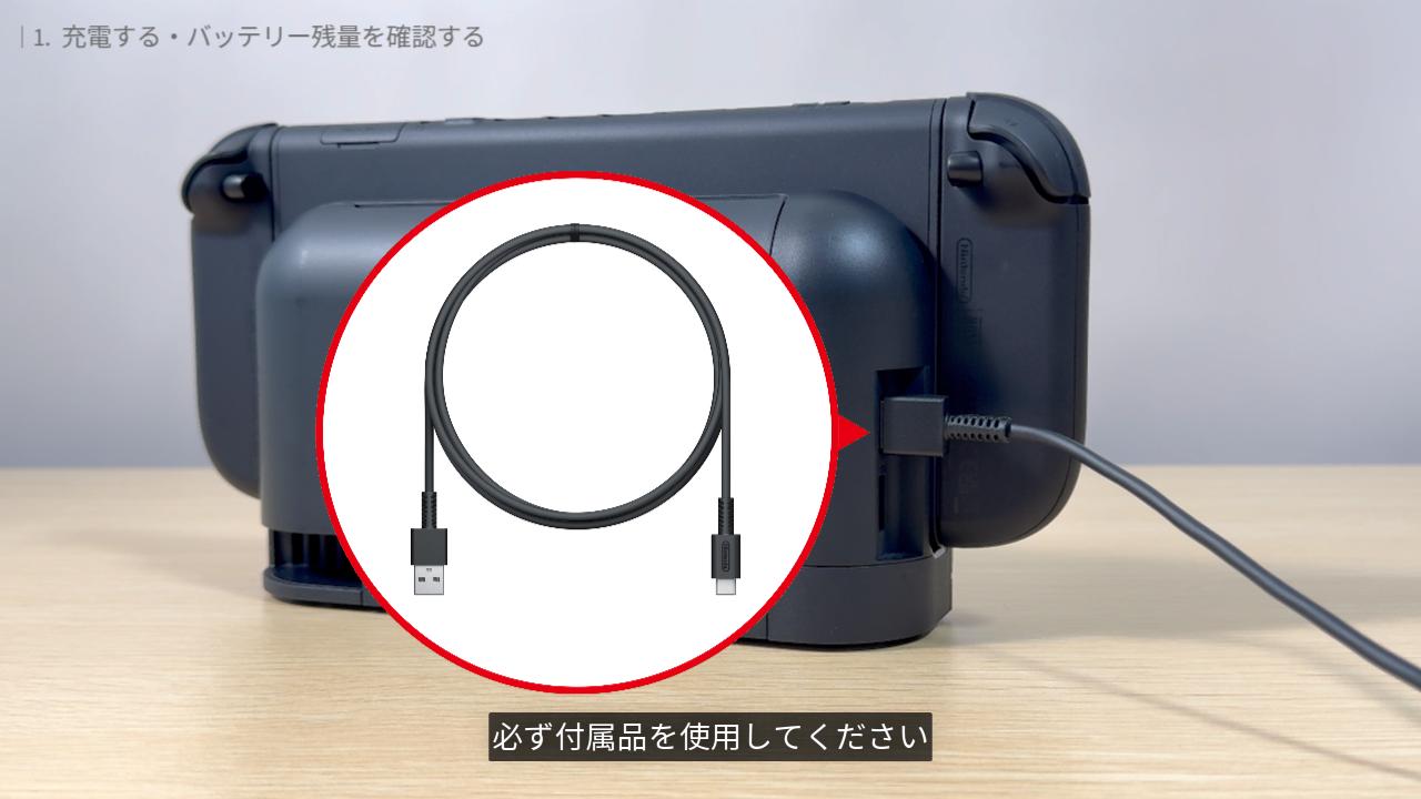 Switch の AC アダプターも使えます。ドックから離れた場所やテーブルモードで充電しながら使いたいときは、Switch の AC アダプターを使用するのがおすすめです。
