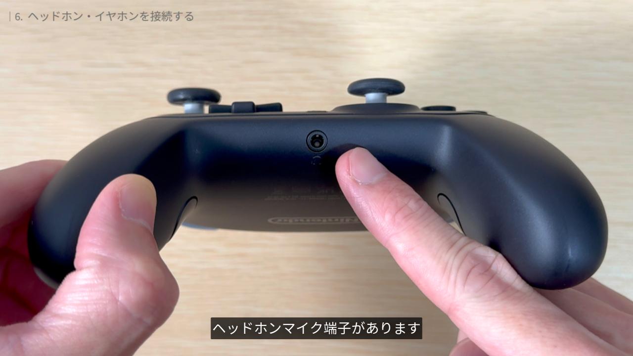 プロコン2の底面には、3.5mm の 4 極ステレオミニプラグに対応したヘッドホンマイク端子があります。