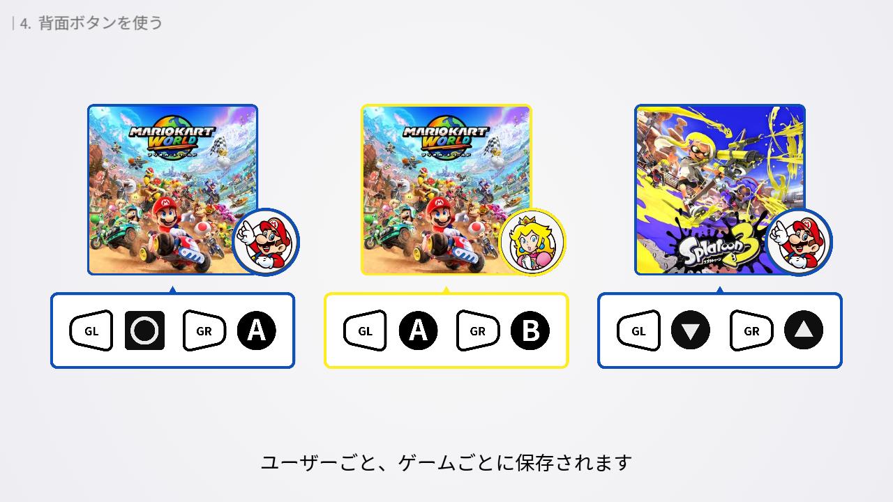 なお、本体設定とクイック設定の両方で背面ボタンを設定している場合、そのゲームにおいてはクイック設定が優先されます。