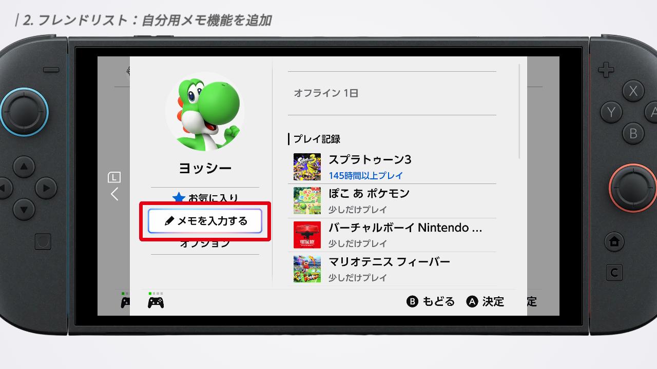 今回の機能追加はこれだけではありません。フレンドごとに自分用のメモを保存できるようになっています。