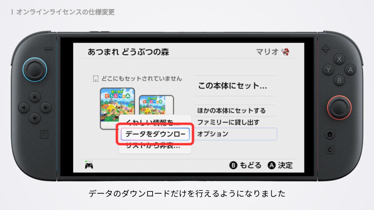 「バーチャルゲームカード」で「オンラインライセンスを使う」がオフの場合にも、データのダウンロードだけを行えるようになりました。