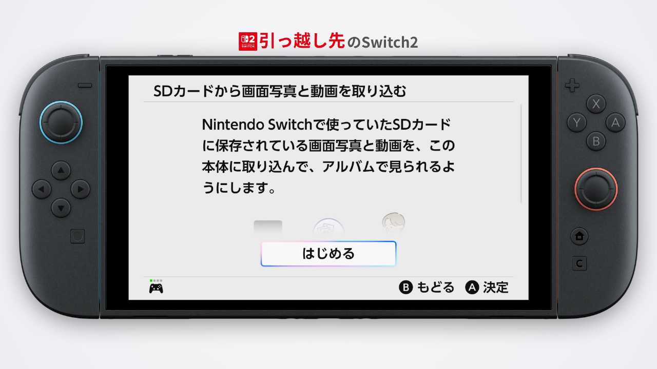 Switch で撮影した写真や動画は、microSD カードを使うことで Switch2 に移すことができます。