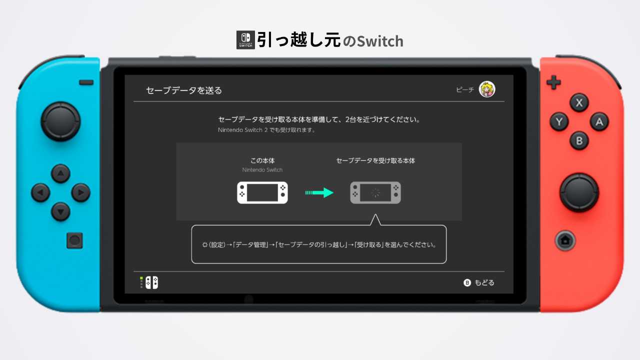※ Switch にはユーザーとセーブデータをまとめて移行できる「ユーザーの引っ越し」という機能がありましたが、Switch2 では利用できません。