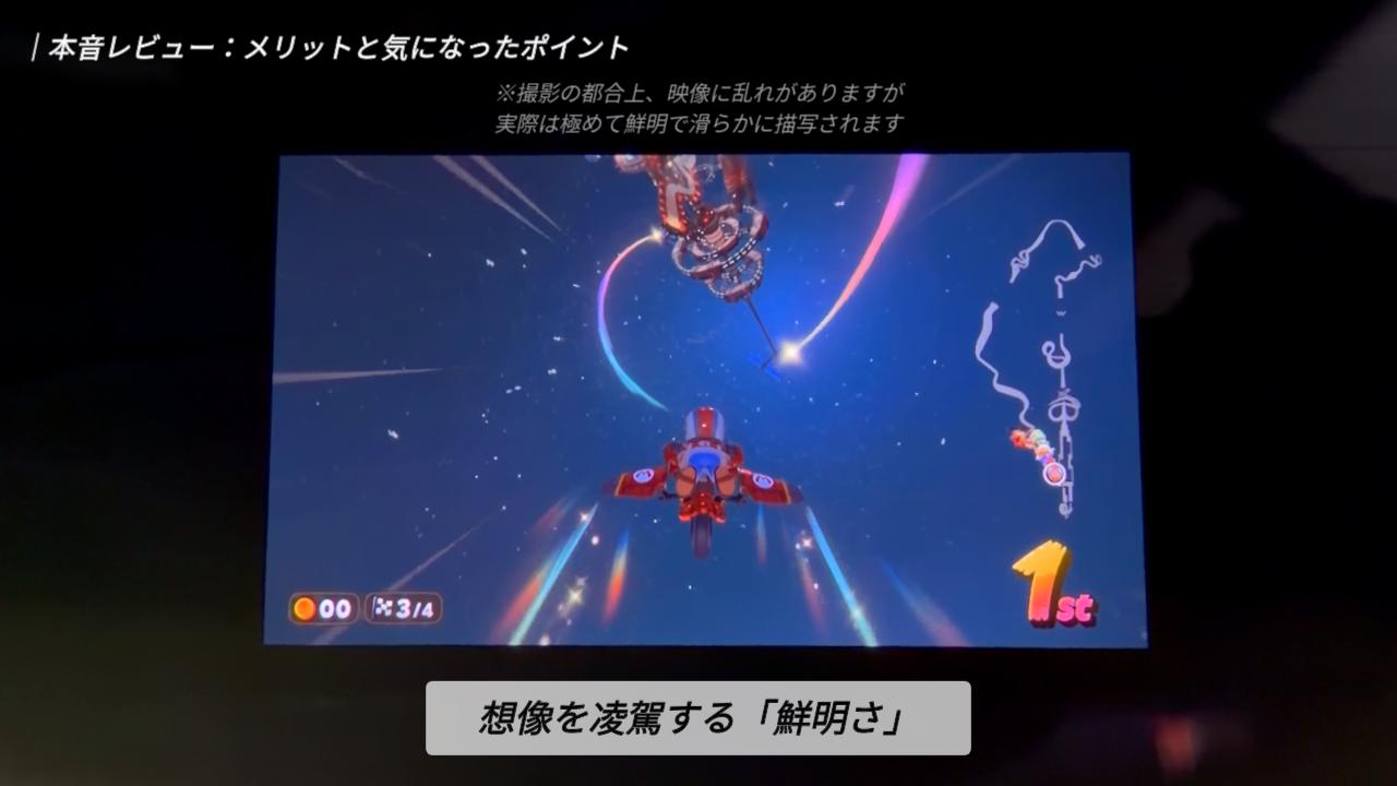 目に映る画面の大きさは、実に152インチ相当。家庭用の大型テレビを遥かに凌駕する圧倒的なスケール感で、Switch2のゲーム世界を文字通り独り占めすることが可能です。