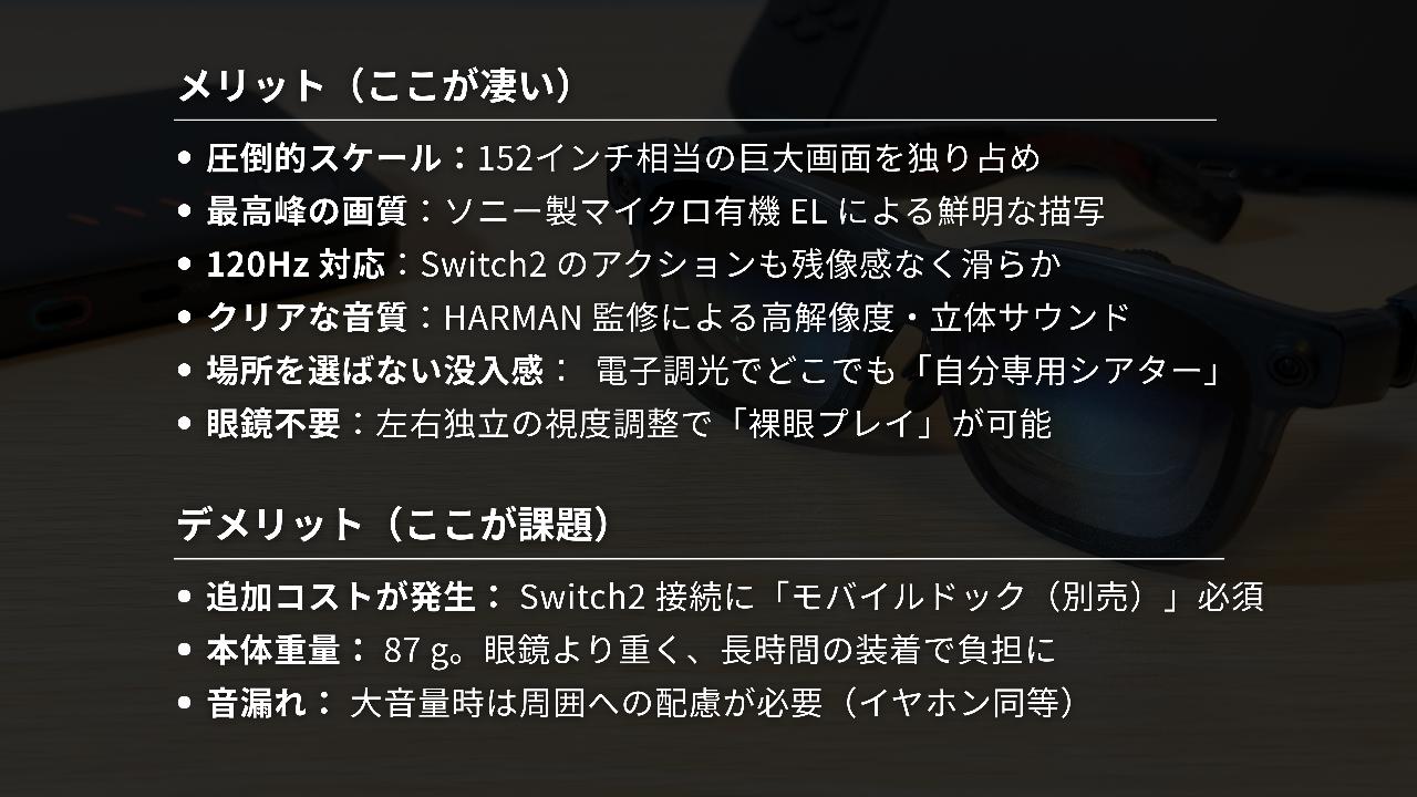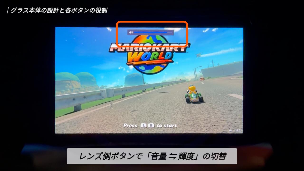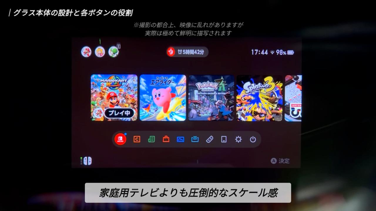 グラスを覗き込めば、目の前にはSwitch2のゲーム画面が圧倒的な迫力で広がっているはずです。