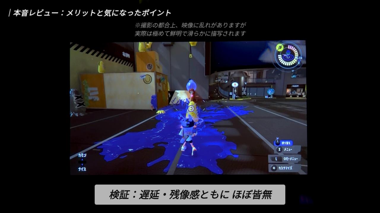 アクションゲームやFPSをプレイした際も、遅延を感じることなく快適に動作します。「スプラトゥーン3」では、ロビーの特定の場面でわずかな重さを感じる瞬間もありましたが、実際の試合中には遅延や残像による違和感は一切なく、いつも通りのパフォーマンスでプレイすることができました。